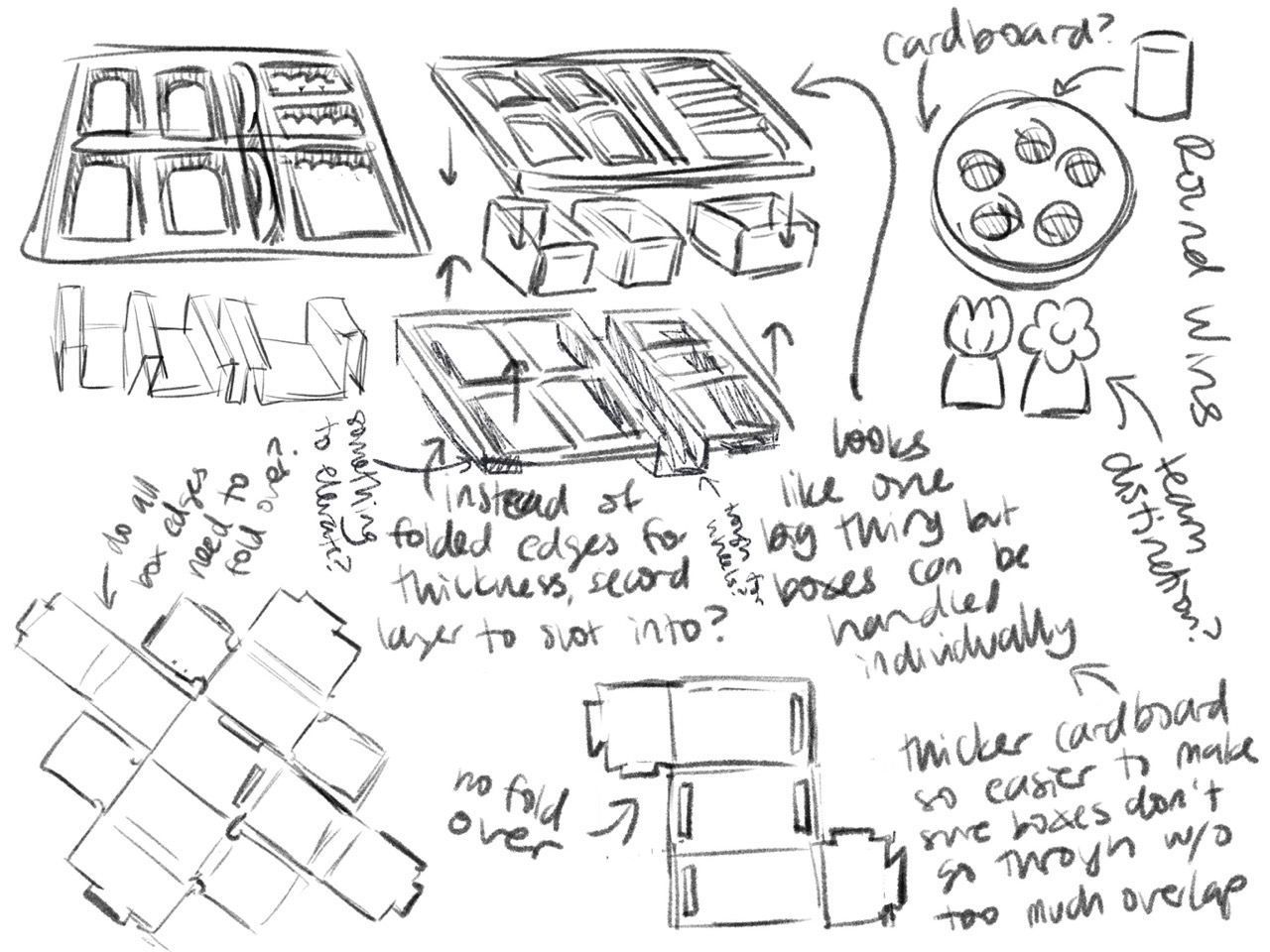 With the goals for each challenge clear, initial ideation focused on accessibility. Considerations included legibility and readability, of course, but also going beyond visuals and using tactile and audio features for more sensory engagement and ways of delivering information.